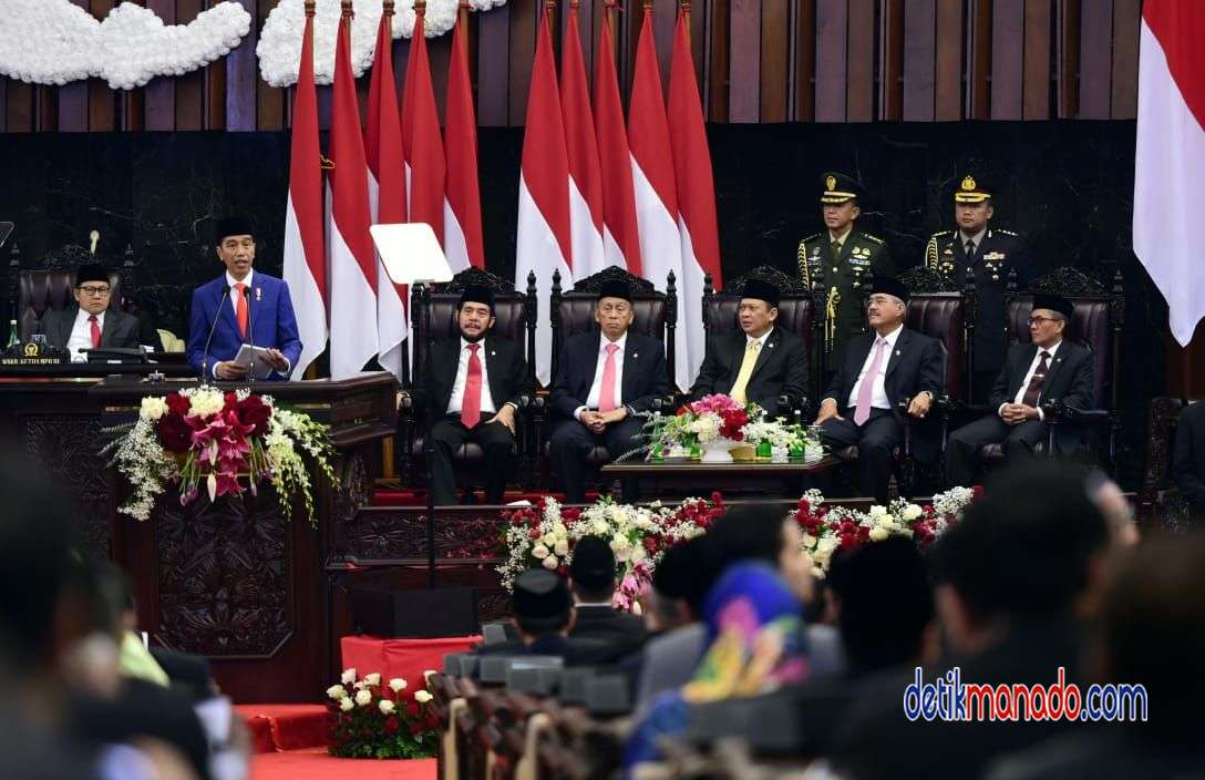 Jakarta,DetikManado.com – Presiden Joko Widodo menyampaikan pidatonya pada Sidang Tahunan MPR RI Tahun 2019 yang digelar di Ruang Rapat Paripurna, Gedung Nusantara MPR/DPR/DPD RI, Jakarta, Jumat (16/08/2019).