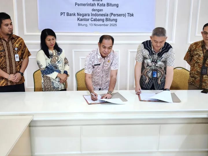 Kerja sama strategis ini ditandai dengan penandatanganan Memorandum of Understanding (MoU) antara Kepala Bapenda Bitung, Theo Rorong, dan Pemimpin Cabang BNI Bitung, Harvy Sanny Fadly Laoh, pada Kamis (13/11/2025).