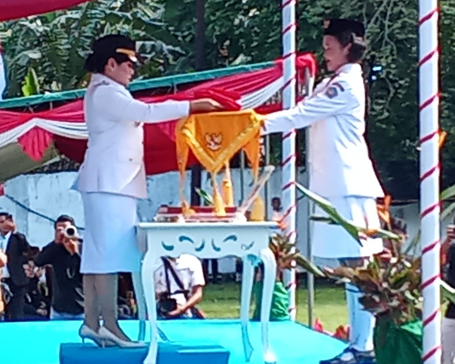 Upacara bendera berlangsung semarak dan khidmat. Paskibraka Sitaro sukses mengibarkan bendera Merah Putih.