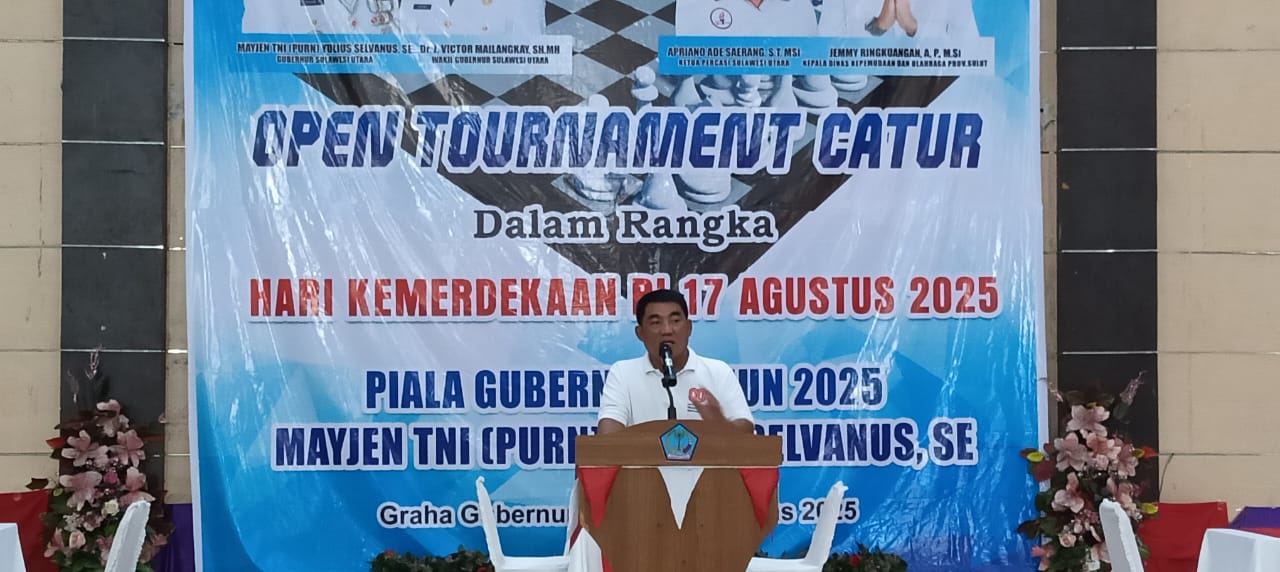 Manado, DetikManado.com – Gubernur Sulut Yulius Selvanus SE membuka secara resmi Open Tournament Catur dalam rangka Hari Kemerdekaan RI 17 Agustus 2025 di Graha Gubernuran Sulut, Kelurahan Bumi Beringin, Kota Manado pada, Senin (18/8/2025).