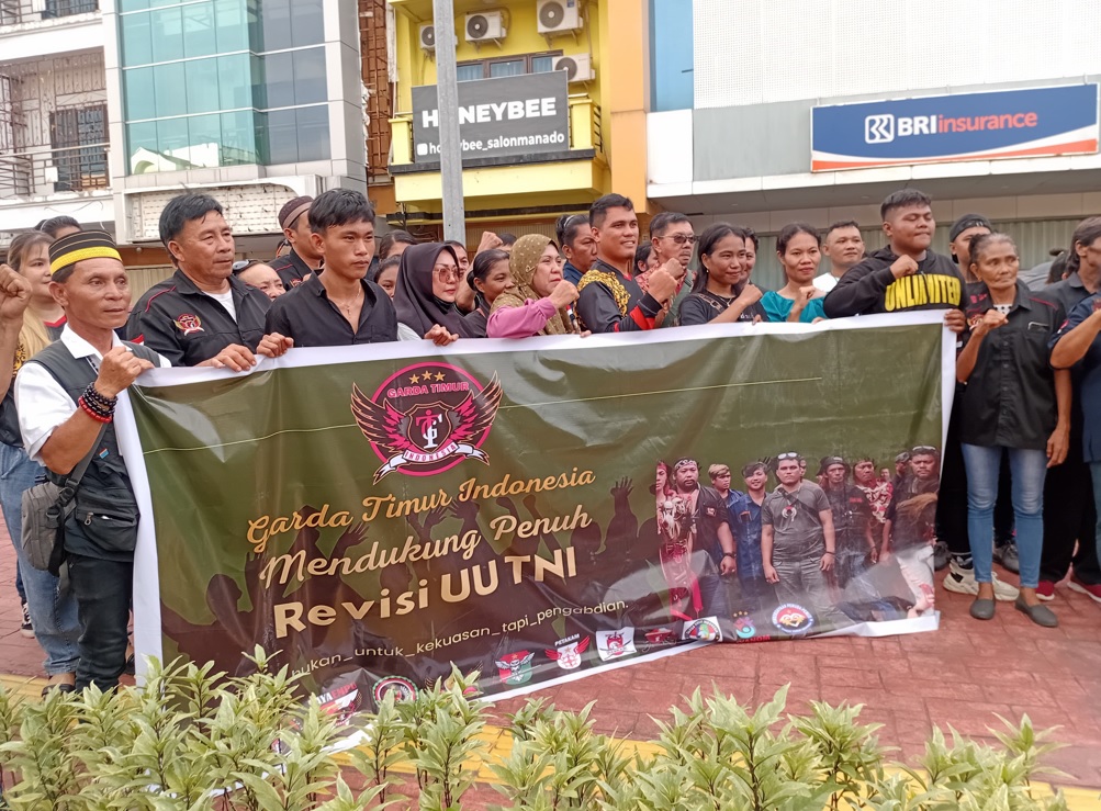 Manado, DetikManado.com – Dukungan terhadap Undang-Undang Tentara Nasional Indonesia (UU TNI) yang baru disahkan oleh DPR RI terus mengalir dari berbagai elemen masyarakat. Di Kota Manado, LSM Garda Timur Indonesia GTI) menggelar aksi simpatik sebagai bentuk dukungan terhadap kebijakan tersebut sekaligus membagikan takjil kepada masyarakat yang melintas, Sabtu (29/5/2025).