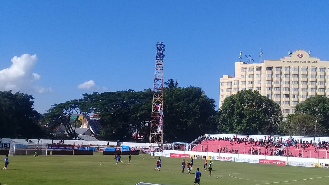 Pantauan DetikManado.com pukul 15.00 wita, sejumlah pemain kedua tim melakukan latihan ringan di lapangan. (joe)