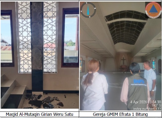 Rusak Ringan: Kantor Walikota Lantai 2, Kantor BPBD Kota Bitung, dan Kantor Lurah Pintu Kota.